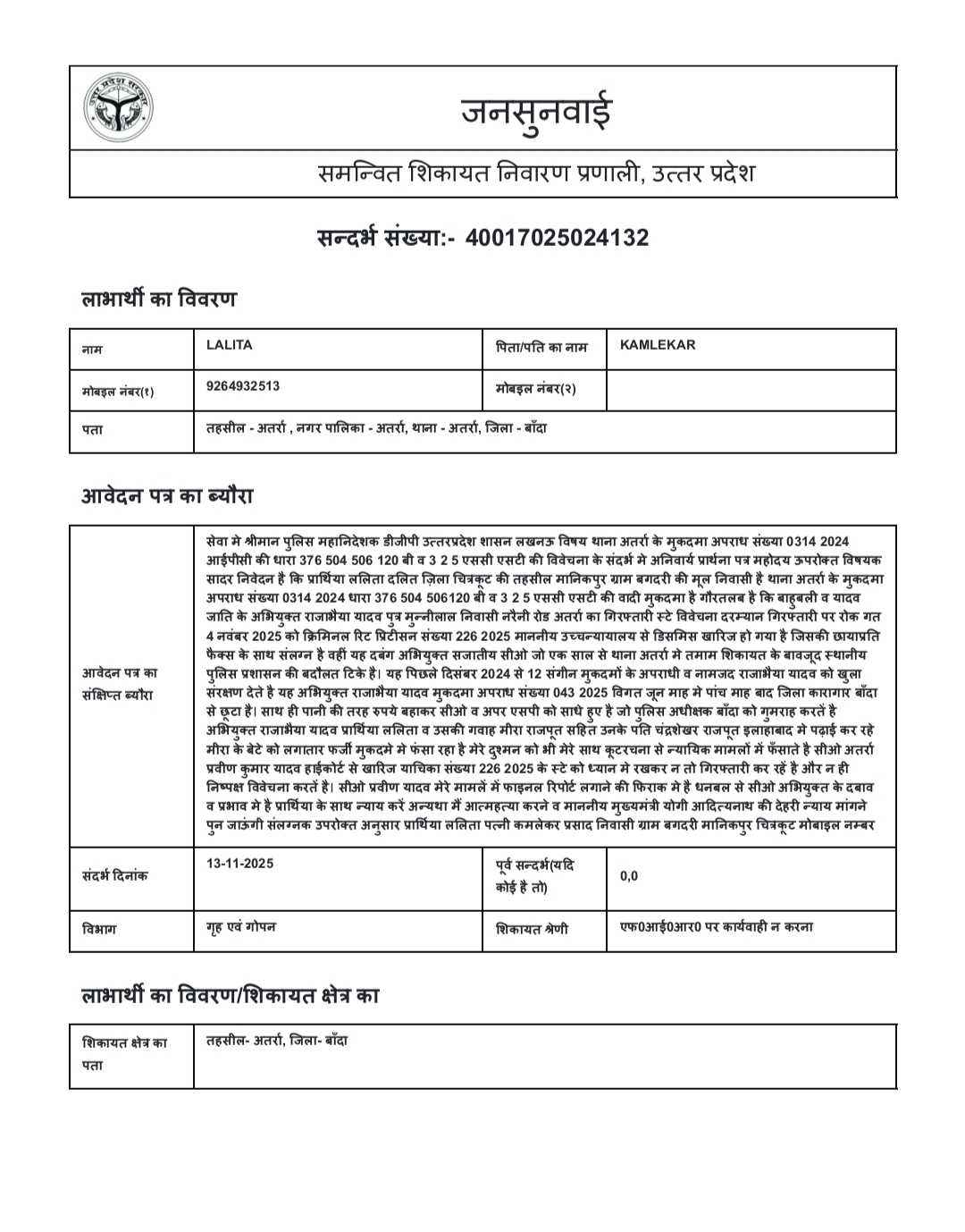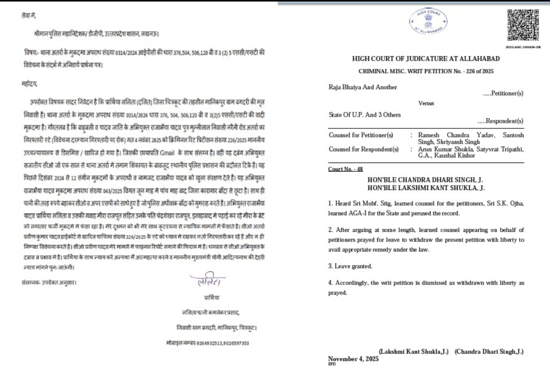 “पिछले एक साल से मुकदमा अपराध संख्या 0314/2024 थाना अतर्रा मे हाईकोर्ट से विवेचना की समयावधि मे “नो कोर्सेव एक्शन” का स्टे मिलने के बाद पुलिस के खासमखास बन चुके राजाभैया यादव को बीते 4 नवम्बर 2025 को माननीय उच्च न्यायालय से स्टे डिसमिस/खारिज होने के बाद झटका लगा था। तब से राजाभैया यादव फरारी के अलर्ट मोड पर थे। गत 18 नवंबर को राजाभैया यादव को गिरफ्तार करने के बाद बाँदा पुलिस मीडिया सेल का मौन और स्थानीय पत्रकारों मे इसकी कोई जानकारी साझा न करना अतर्रा सीओ पर बड़े सवाल खड़े करता है। तब जबकिं पिछली बार अतर्रा कोतवाली प्रभारी तत्कालीन एसएचओ कुलदीप तिवारी ने मीडिया को जानकारी दी थी। गिरफ्तारी की तस्वीर पुलिस मीडिया सेल से भी जारी की गई थी।
