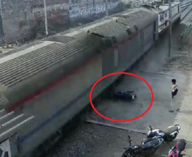दरअसल, कासंगज-अनवरगंज रेल रूट पर शुक्रवार की शाम करीब चार बजे रावतपुर रेलवे क्रासिंग बंद थी। कासगंज की आरे से सुपर फास्ट ट्रेन आने वाली थी, जो सेंट्रल की ओर जा रही थी। गेटमैन ने रावतपुर क्रॉसिंग का फाटक बंद कर दिया था, बावजूद इसके कई वाहन सवार बैरियर के नीचे से अपनी बाइक निकाल रहे थे। इसी बीच एक युवक ने भी बाइक बैरियर के नीचे निकाली और रेलवे ट्रैक पर पहुंच गया। इस बीच अचानक सामने ट्रेन आते देखकर बाइक छोड़कर पीछे की ओर भाग निकला। लोगों ने शोर मचाया लेकिन तबतक सुपरफास्ट ट्रेन आ गई। ट्रेन तेजी से बाइक से टकराते हुए निकली तो बाइक के परखच्चे उड़ गए।
