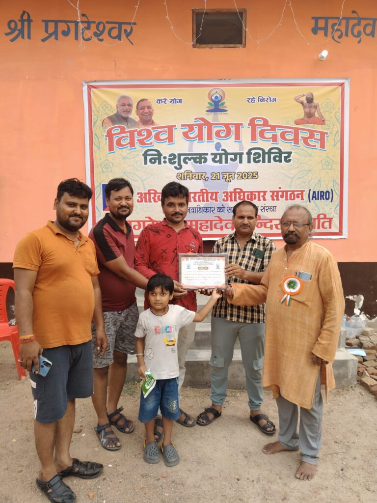 लखनऊ | मुजफ्फर खेड़ा चौराहा के निकट श्री प्रगटेश्वर महादेव मंदिर मैं एक दिवसीय योग शिविर का आयोजन किया गया जिसमें लगभग 100 लोगों ने प्रति भाग लिया इसमें श्री योगी अनिल देव जी द्वारा प्राणायाम के साथ उनके लाभ और करने का तरीका भी बताया गया साथ ही डॉक्टर आलोक चटिया जीने योग के बारे में बताते हुए अंत में श्री योगी अनिल देव जी को अंग वस्त्र देकर एवं सम्मान स्वरूप सहित प्रशस्ति पत्र प्रदान किया गया इसके बाद होम्योपैथिक शुगर का आयोजन किया गया लोगों को सूक्ष्म जलपान सहित सम्मान पत्र देकर उनके आने का धन्यवाद दिया गया |