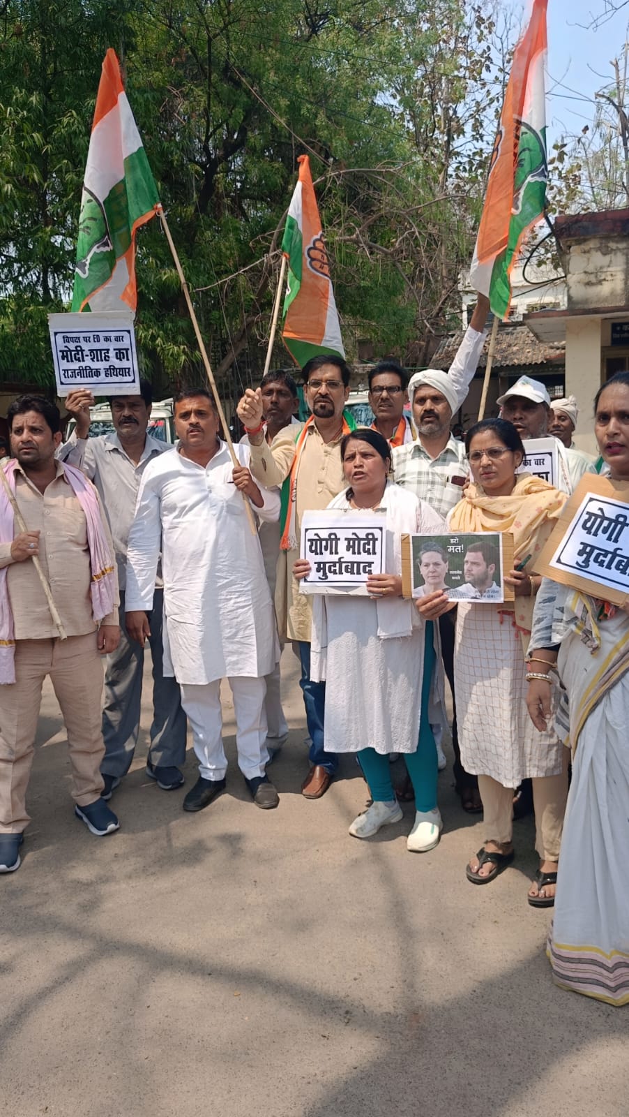 - बाँदा मुख्यालय पर जिलाध्यक्ष राजेश दीक्षित के नेतृत्व मे हुआ प्रदर्शन, प्रधानमंत्री मोदी और मुख्यमंत्री योगी के मुर्दाबाद लिखी तख्तियां लहराई गई।