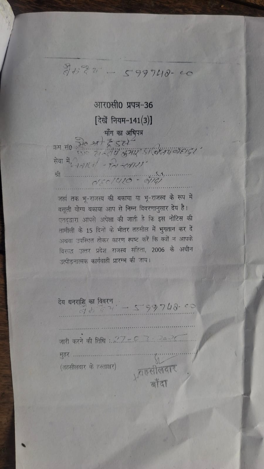 - संदीप को 5 लाख मे डेढ़ लाख रुपया आज तक नही मिला लेकिन उसको तहसीलदार के हस्ताक्षर युक्त रिकवरी नोटिस ज़रूर मिल गया है।