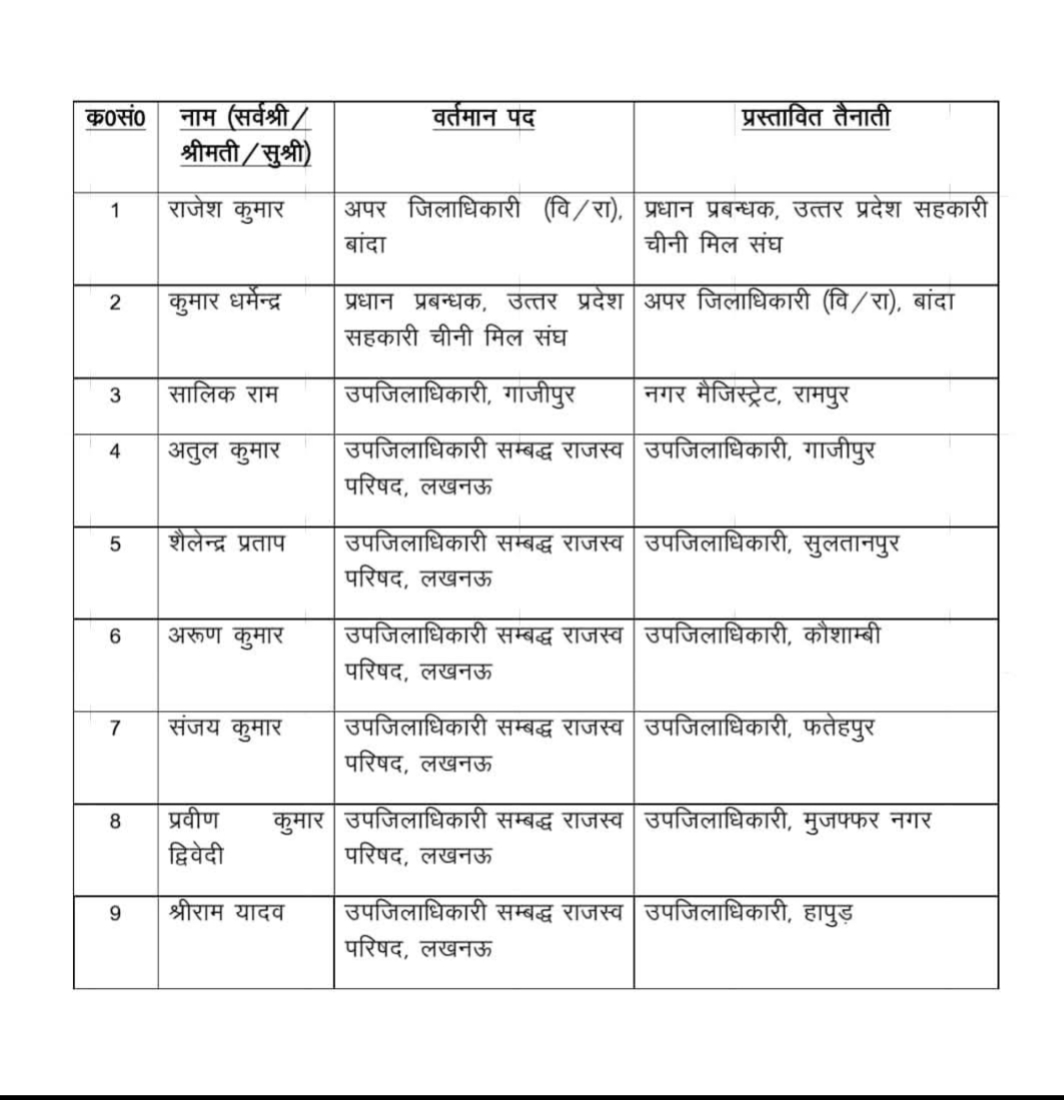 एडीएम एफआर के स्थानांतरण की लिस्ट तस्वीर मे