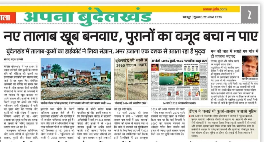 कुछ ऐसा ही कारनामा बाँदा मे नगरपालिका की कामधेनु ‘छाबी तालाब’ के साथ है हाल ही मे अमृत सरोवर से इसमें 3 करोड़ रुपया खर्च हुआ है। इसके पूर्व तत्कालीन नगरपालिका अध्यक्ष श्रीमती विनोद जैन ने इसमें लाखों रुपया का काम कराया था। ठेकेदारों ने लाखों की मिट्टी बेचीं और तालाब का स्वरूप तक मिट्टी भरकर बिगाड़ दिया गया। कभी बाँदा के मशहूर चोर आबिद बेग ने इस तालाब के घाट बनवाये थे। बामदेवेश्वर पहाड़ का पानी से तालाब भरता था। वहीं शहर का ढालान यहीं था। तालाब की छवि अत्यंत मनमोहक थी इसलिए इसको अपभ्रंश मे छाबी तालाब कहने लगे। बुंदेलखंड मे हर गांव मे कहीं दर्जन भर तो कहीं इससे कम या ज्यादा तालाब ग्रामसभा मे आज भी है पर विडंबना है उन्हें बचाने का भगीरथ संकल्प सरकार और समाज के पास उपलब्ध नही है। यह विंध्याचल को सुखाड़ और पानी के भूगर्भीय स्रोतों से वंचित करता है।
